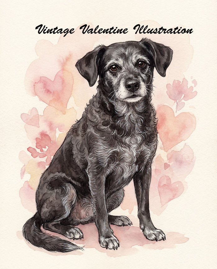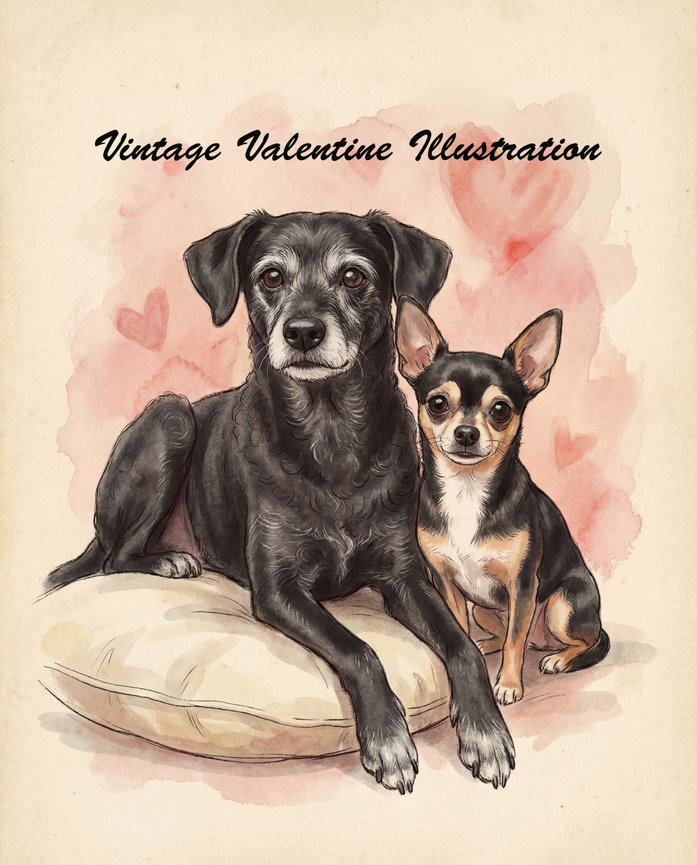 Vintage Valentine Illustration — nostalgic with optional banner personalization